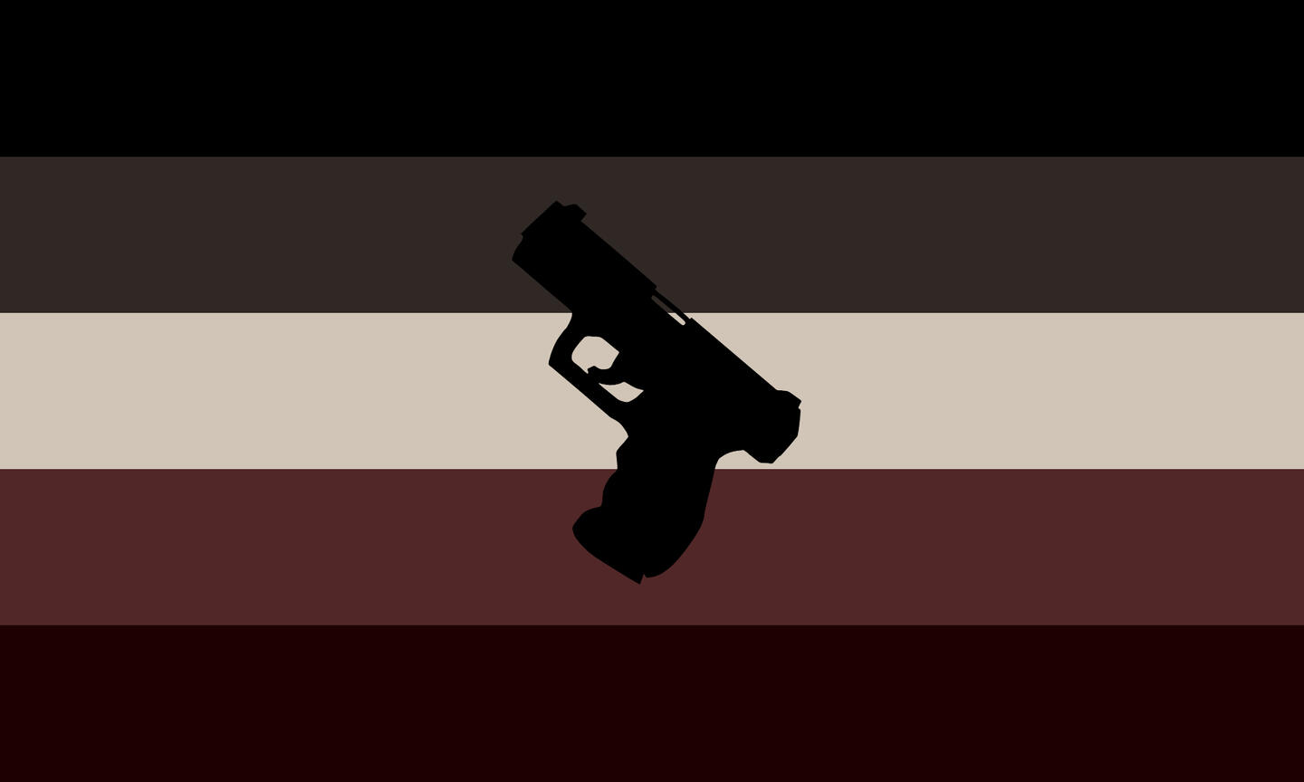 The black represents the symbolically 'dangerous' figure of a gun being hidden in the dark.The dusty brown represents the beckoning glint on a gun's surface as light hits it.The light yellow represents the flash of a gun being shot.The light brown represents the intense potential of danger found within guns.The dark brown represents the attempted concealment of danger by having guns in holsters.
