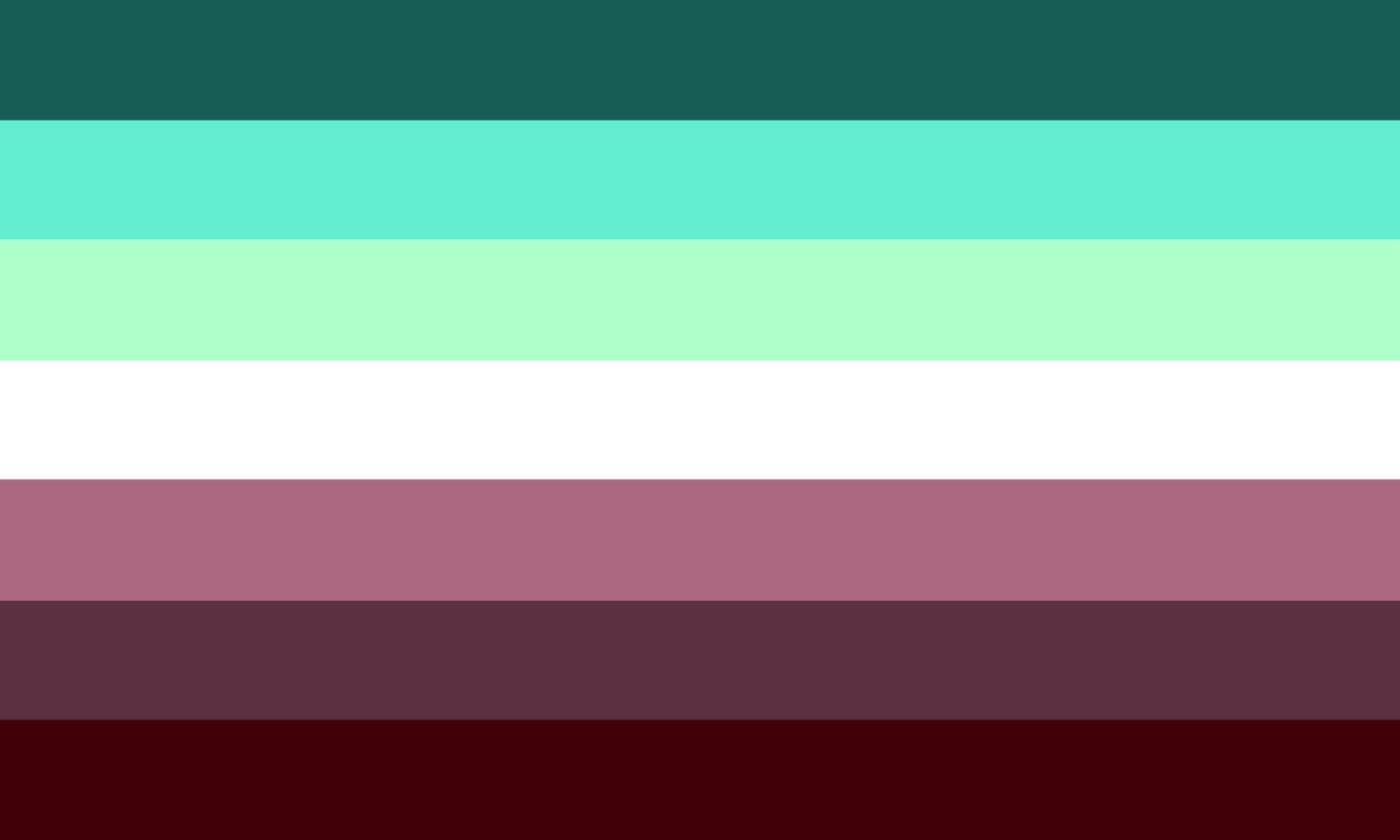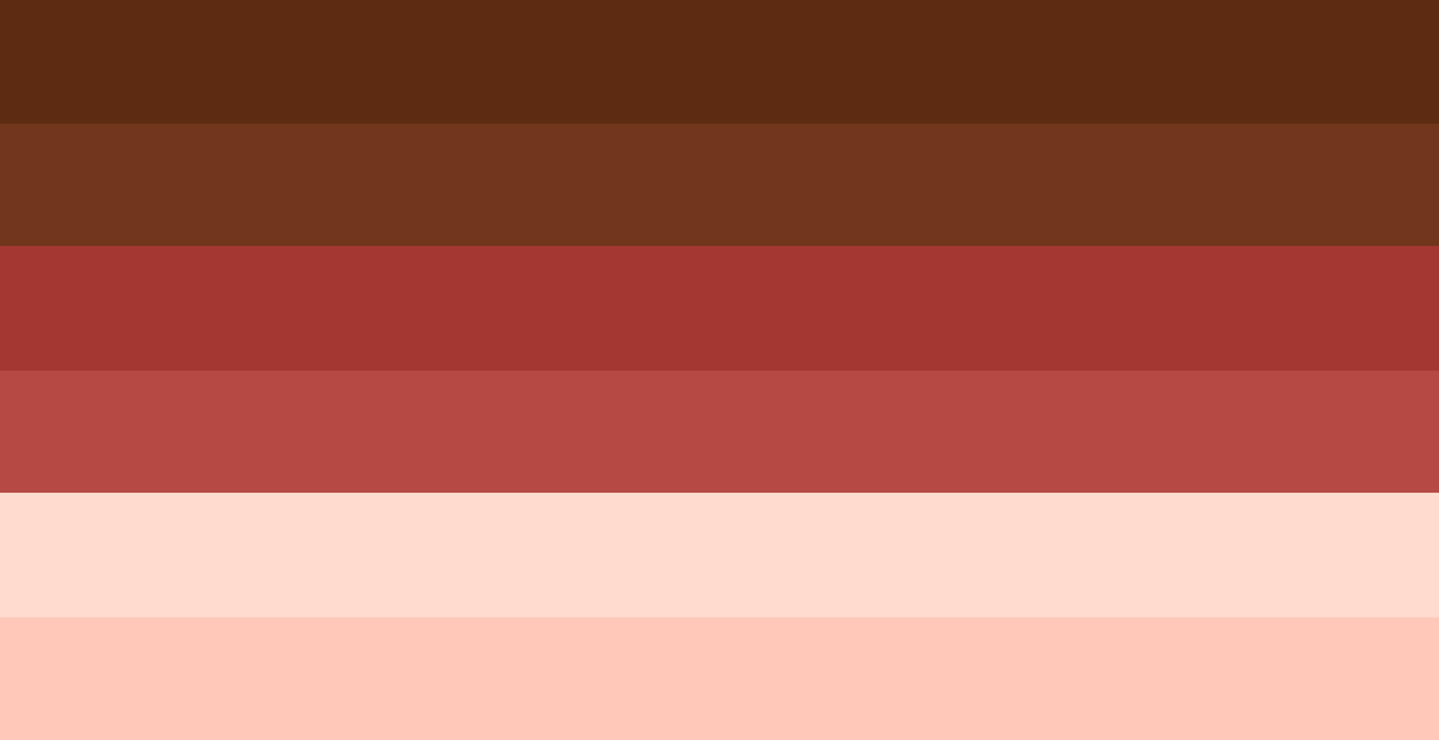 The top dark teal stripe represents booting up a computer.The mint stripe represents playful lewdness.The light mint stripe represents freedom for expressing sexuality.The middle white stripe represents hope for having a "cuter" (better) future.The light maroon represents gradual acceptance of paraphilias.The brown represents interests considered 'problematic'.The dark brown represents relatable inhumanity.