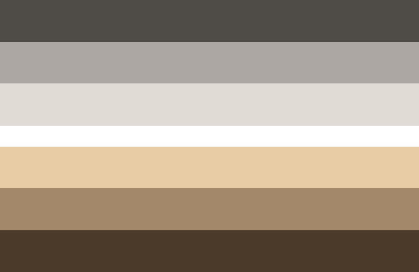 The top dark stripe represents immobility.The grey stripe represents figures that are smooth to touch.The light grey stripe represents a hardened surface.The white stripe represents the beauty of their object of affection.The tan stripe represents a softened surface.The brown stripe represents figures that are rough to touch.The bottom dark stripe represents affection.